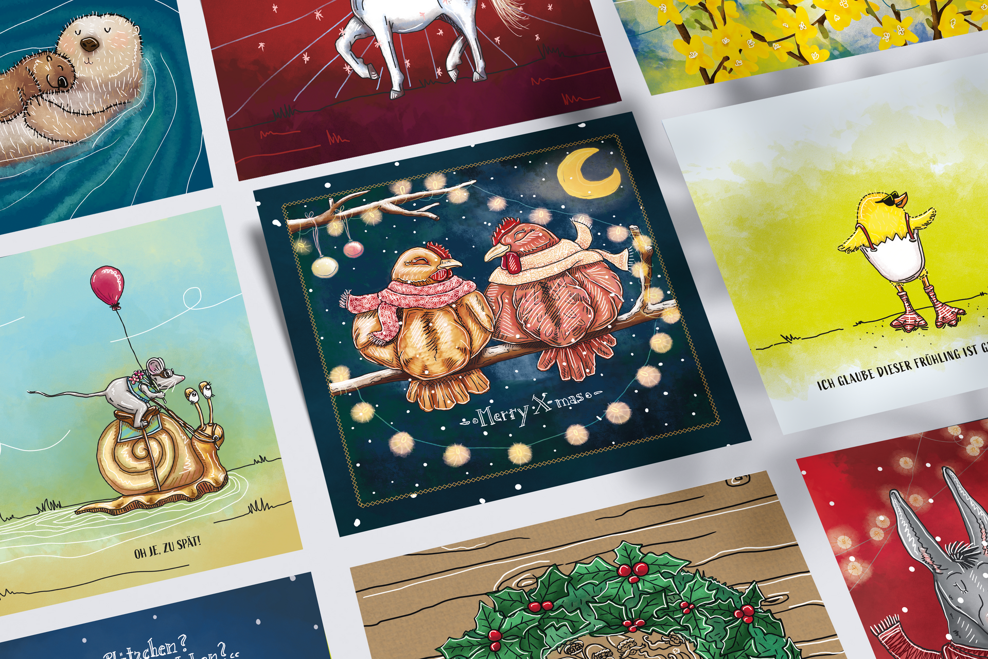 Eine spezielle Aufgabenstellung habe ich mir durch meine freie Arbeit an verschiedenen Grußkarten und Puzzlemotiven auferlegt. Im Rahmen dessen, habe ich verschiedene Puzzle von 24 bis 2000 Teilen gestaltet und gedruckt und eine Kollektion von eigenen Grußkarten entwickelt. Eine Aufgabe, die viel Freude macht - und das sowohl im Prozess, als auch nach Fertigstellung.