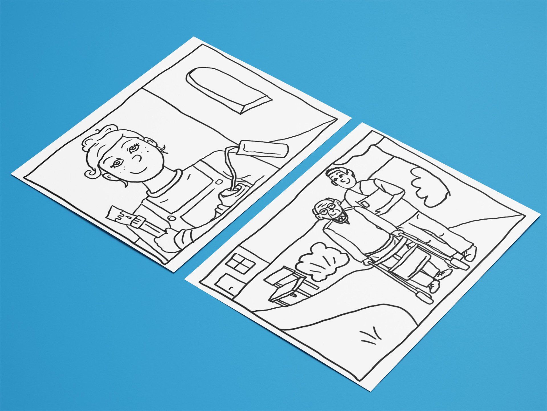 Für das Jobcenter Bochum gestaltete ich die Illustrationen für ein Kinder-Malbuch zum Thema Berufe. Dieses ist an die Kinder, der dort zu beratenden Kunden gerichtet und soll ihnen eine Möglichkeit geben, die Zeit der Beratungstermine möglichst farbenfroh zu gestalten.