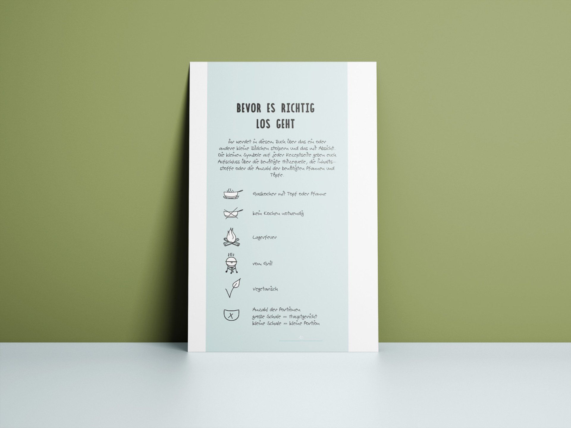 Im Rahmen der Buchgestaltung des Kochbuchs "Bulliproofed" habe ich einige Icons entwickelt, die dem Leser auf simple Weise Aufschluss über benötigte Küchenutensilien oder die Inhaltsstoffe der Rezepte geben. Da es sich bei dem Kochbuch um ein Reisekochbuch für VW-Bus-Begeisterte handelt und sich die ganze Buchgestaltung im Stil eines handschriftlichen Rezeptbuchs bewegt, waren verspielte Elemente gefragt. Ich habe mich daher für kleinteilige und dennoch simple Symbole entschieden.